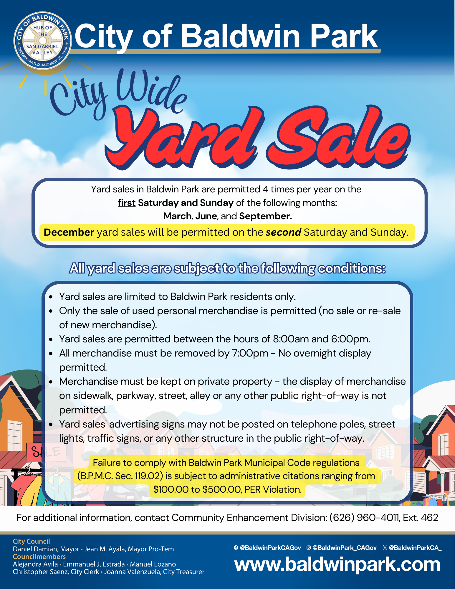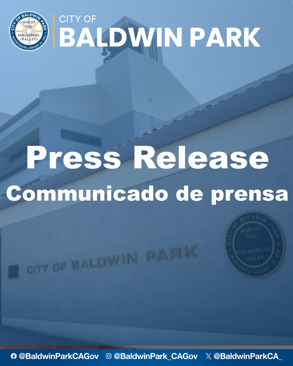 Residents seeking reliable information and resources are encouraged to visit the Los Angeles County Office of Immigrant Affairs at oia.lacounty.gov and the City’s webpage at www.baldwinpark.com. Anyone who observes activity that may pose a risk to public safety is encouraged to contact the Baldwin Park Police Department at 626-960-1955.